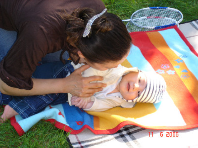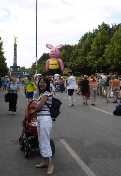 Lukas and Mom at "Puplic viewing" in Berlin during World Cup