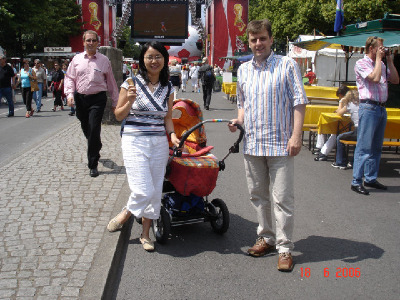 Lukas, Mom and Dad at "Puplic viewing" in Berlin during World Cup